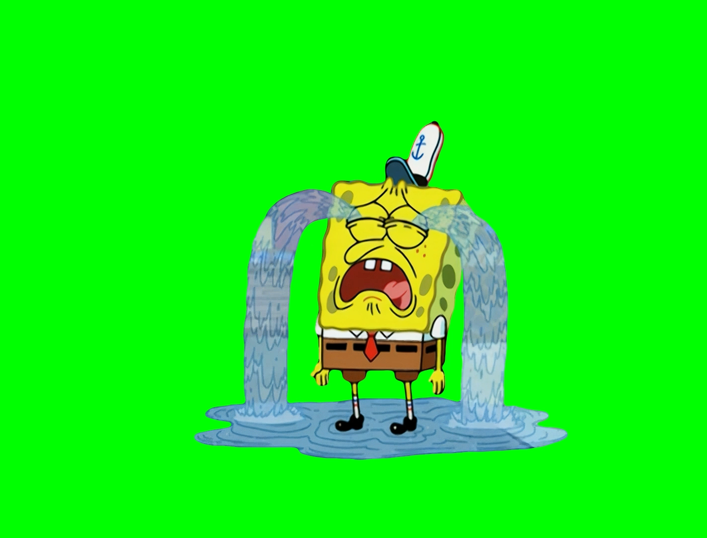 Green Screen Meme Template of SpongeBob crying a lot with tears/water puddle on the floor