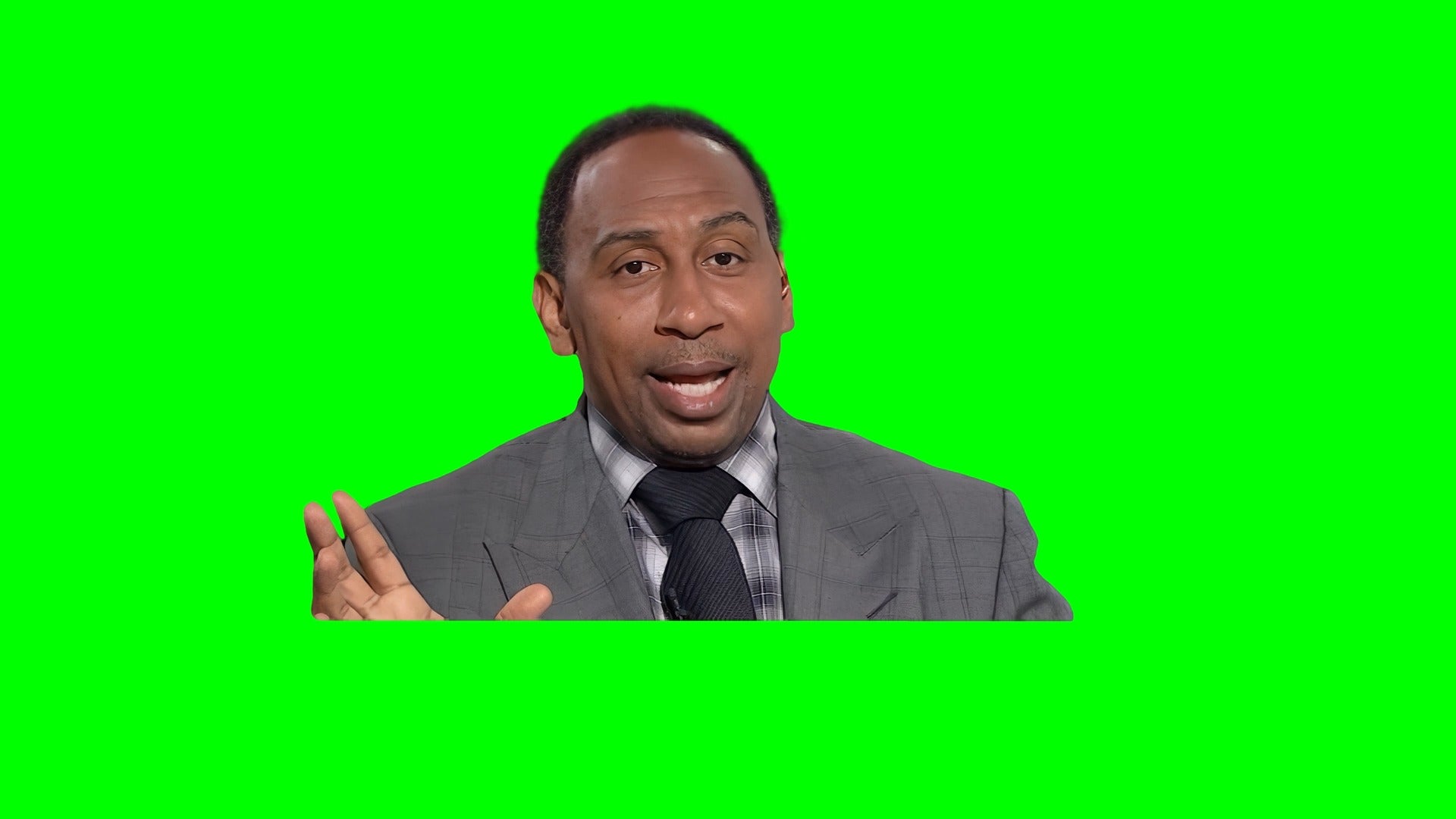 Green Screen Meme Template of Stephen A. Smith saying "We don’t care!" and then laughing