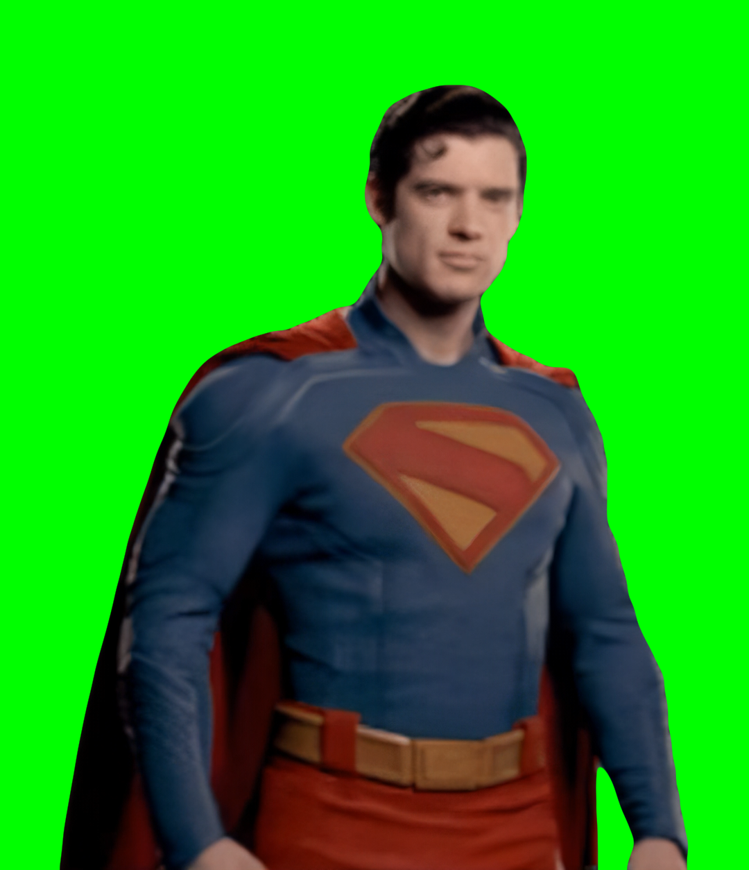 Green Screen Meme Template of Superman (Daren Corenswet) Staring at the camera. Song: Starman by David Bowie