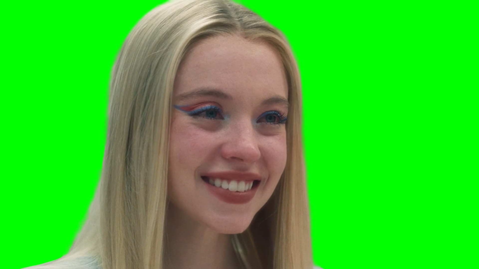 Green Screen Meme Template of Sydney Sweeney crying and smiling in front of the mirror in the Euphoria TV Show
