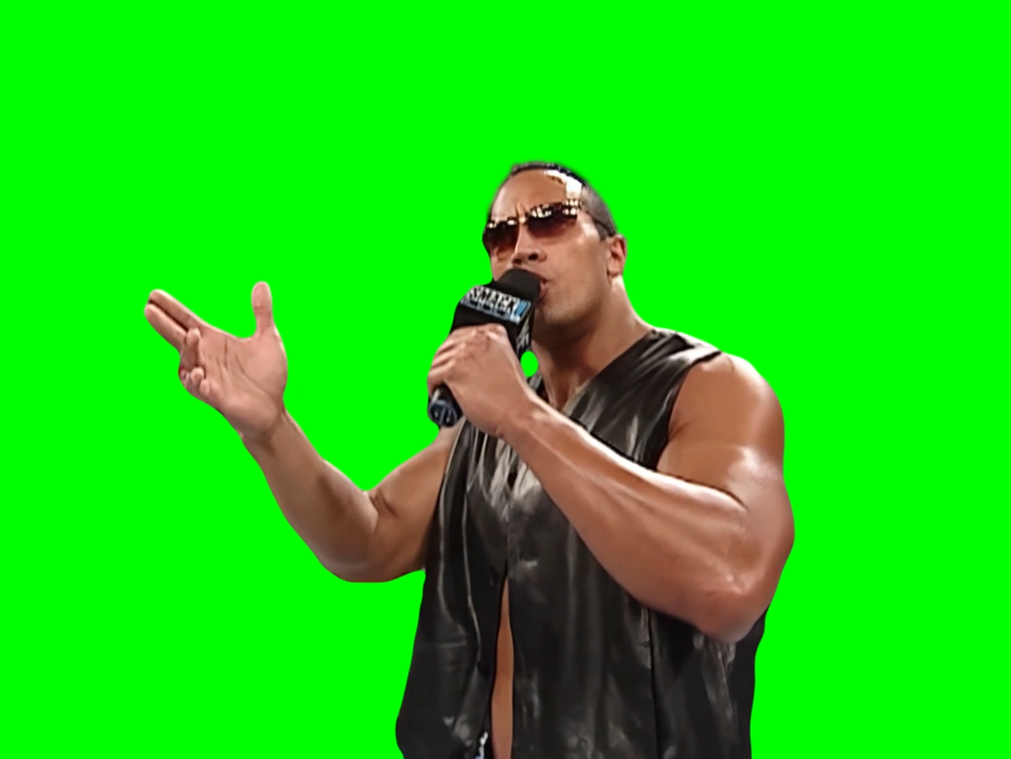 Green Screen Meme Template of The rock saying "Who in the blue hell are you?!" to Booker T