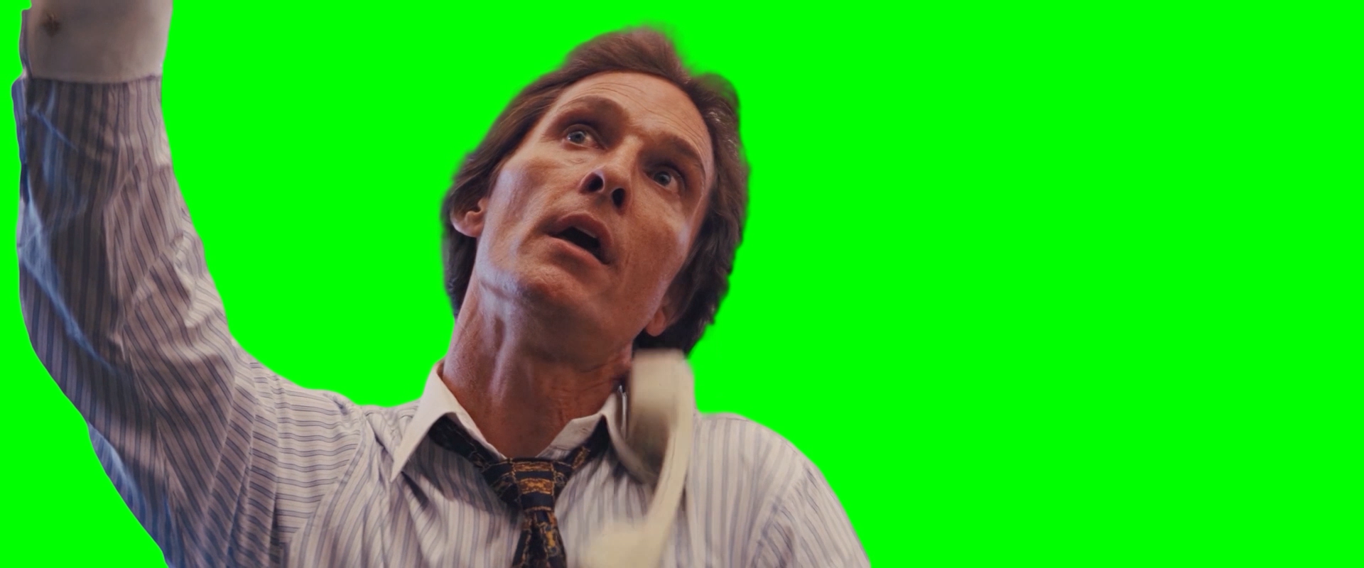 Green Screen Meme Template of Matthew McConaughey saying "Holy fucking shit" in The Wolf of Wall Street movie
