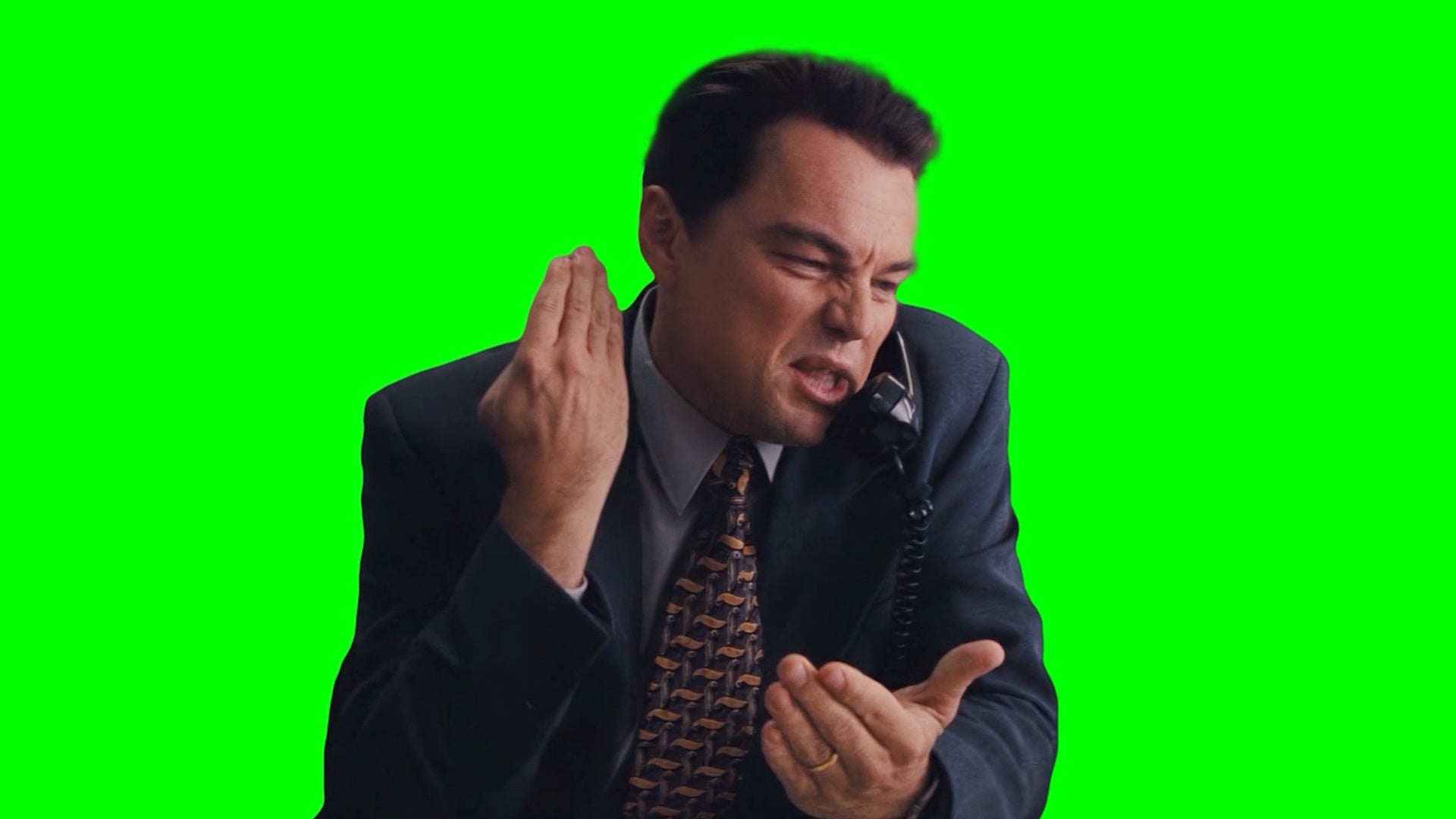 Green Screen Meme Template of Leonardo DiCaprio talking on the phone and saying "The Reason For The Call Today John Is" meme