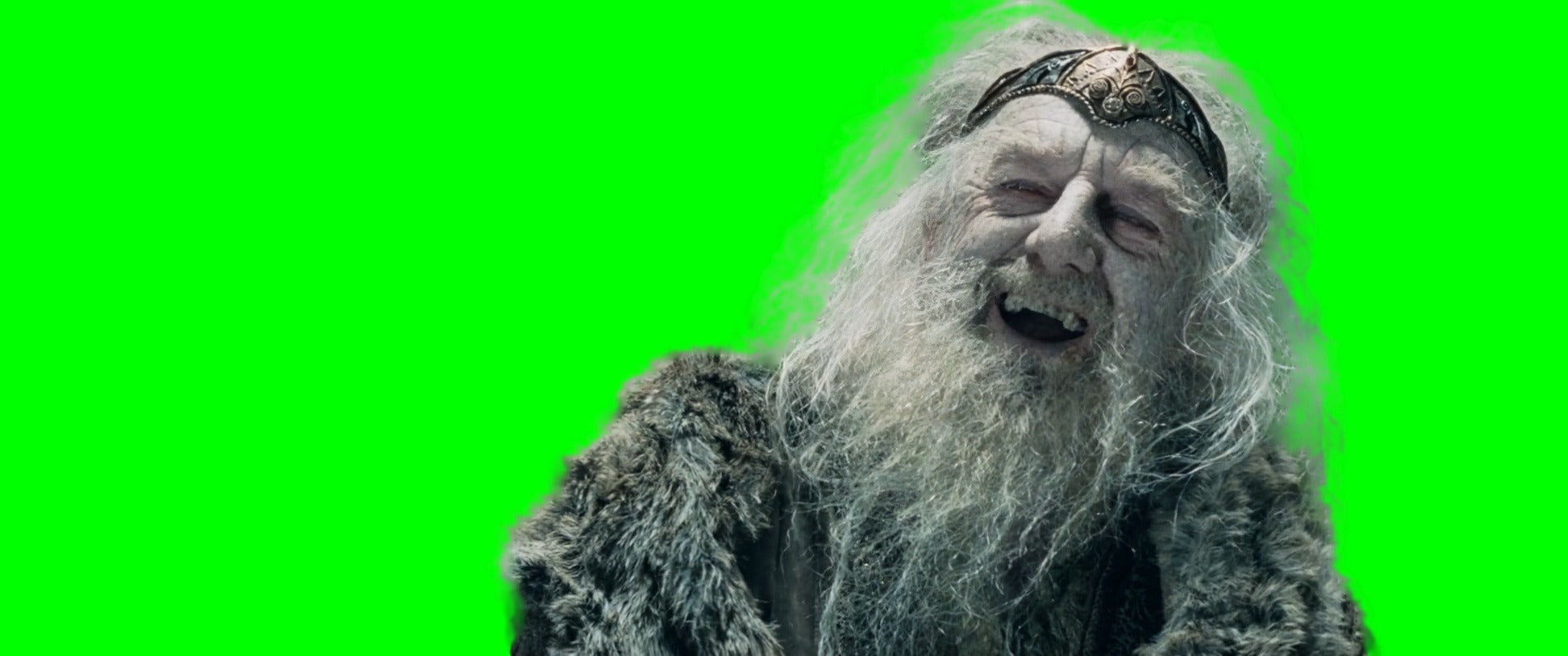 Green Screen Meme Template of Théoden saying "You Have No Power Here!" to Gandalf then laughing
