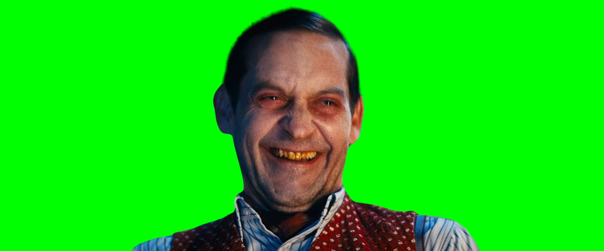 Green Screen Meme Template of Tobey Maguire laughing in the Babylon movie