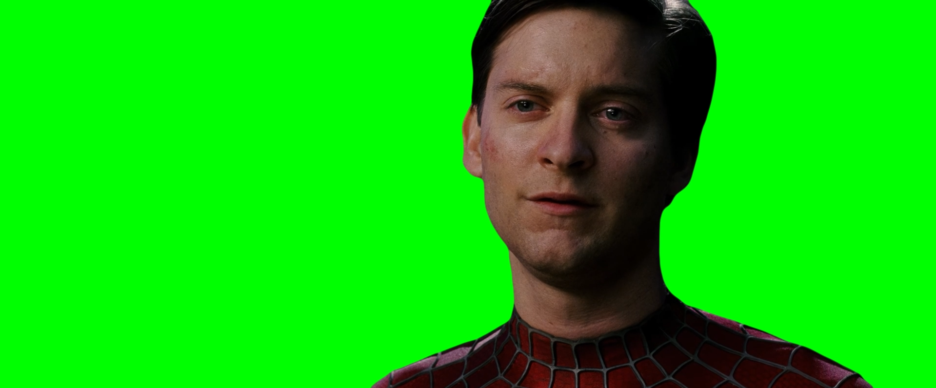 Green Screen Meme Template of Tobey Maguire saying "I forgive you" to Sandman in the Spider-Man 3 movie