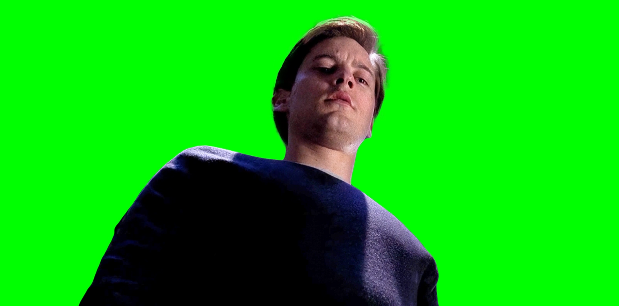 Green Screen Meme template of Peter Parker throwing away his Spider-Man suit