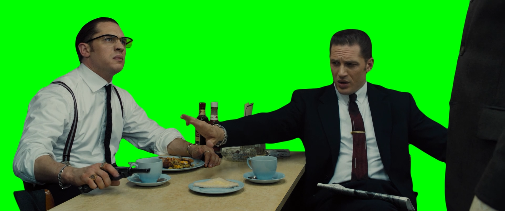 Green Screen Meme Template of Tom Hardy putting a gun on a table