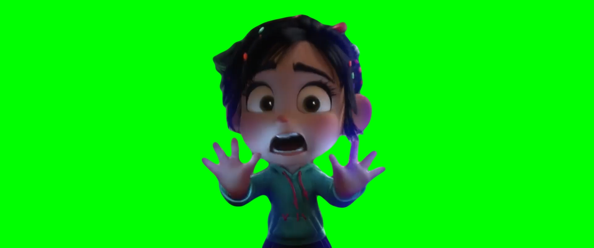Green Screen Meme Template of Vanellope getting sucked into the void