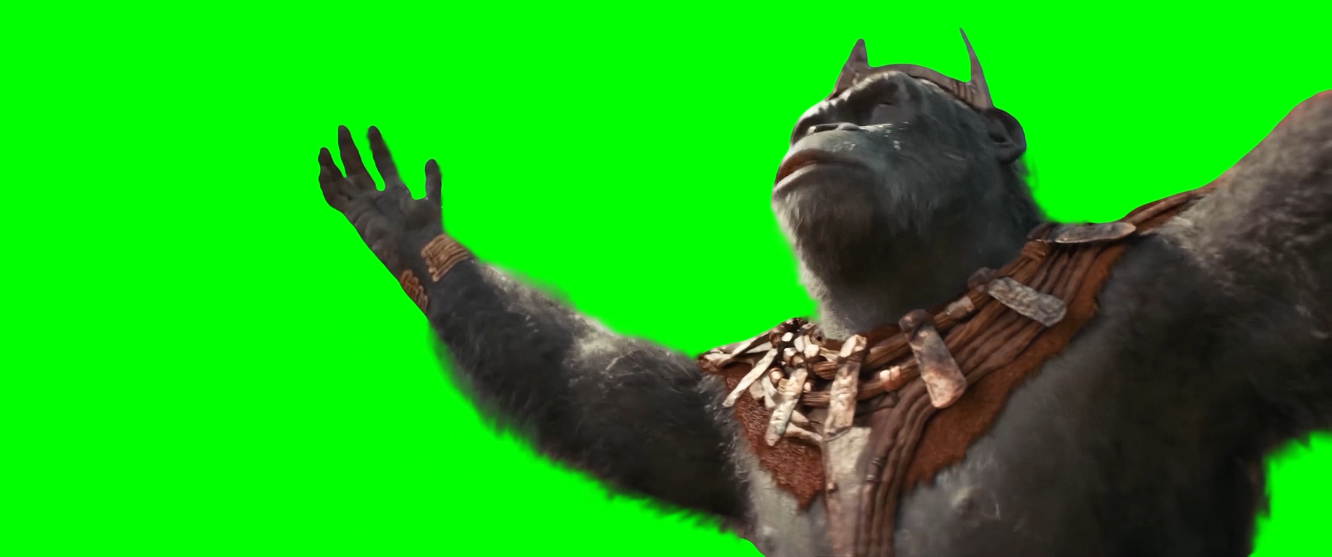Green Screen Meme Template of Proximus Caesar saying "WHAT A WONDERFUL DAY!" in the Kingdom of the Planet of the Apes movie