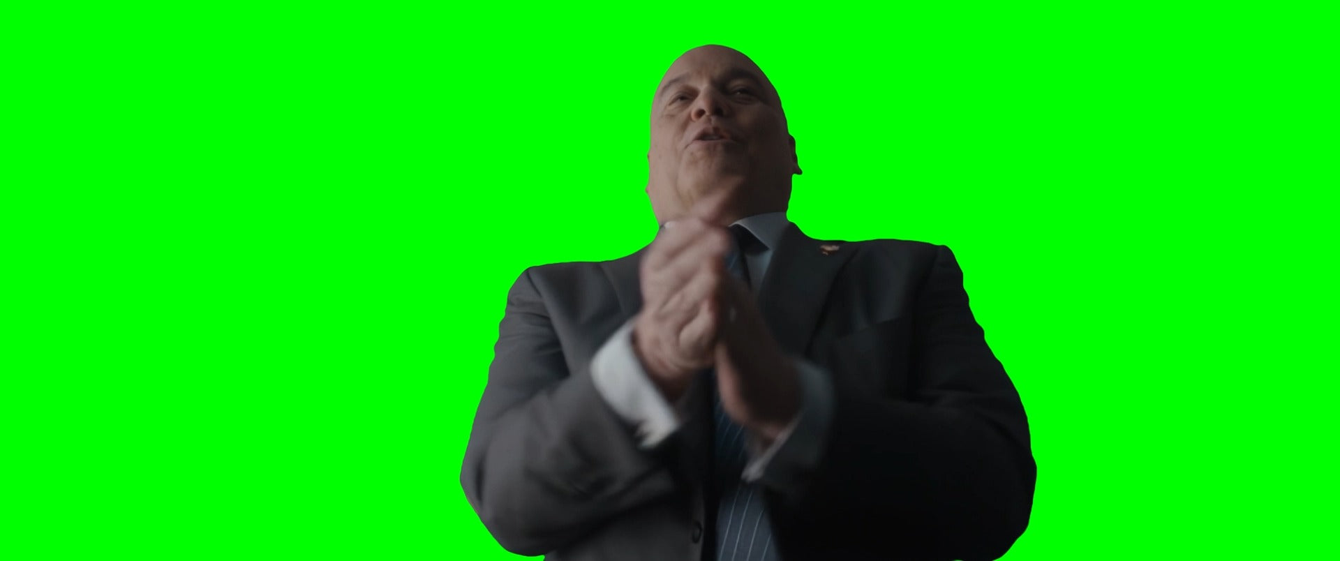 Green Screen Meme Template of Wilson Fisk standing up and clapping while saying "Just wonderful!" after a middle school choir sings for him after he becomes a mayor of New York City
