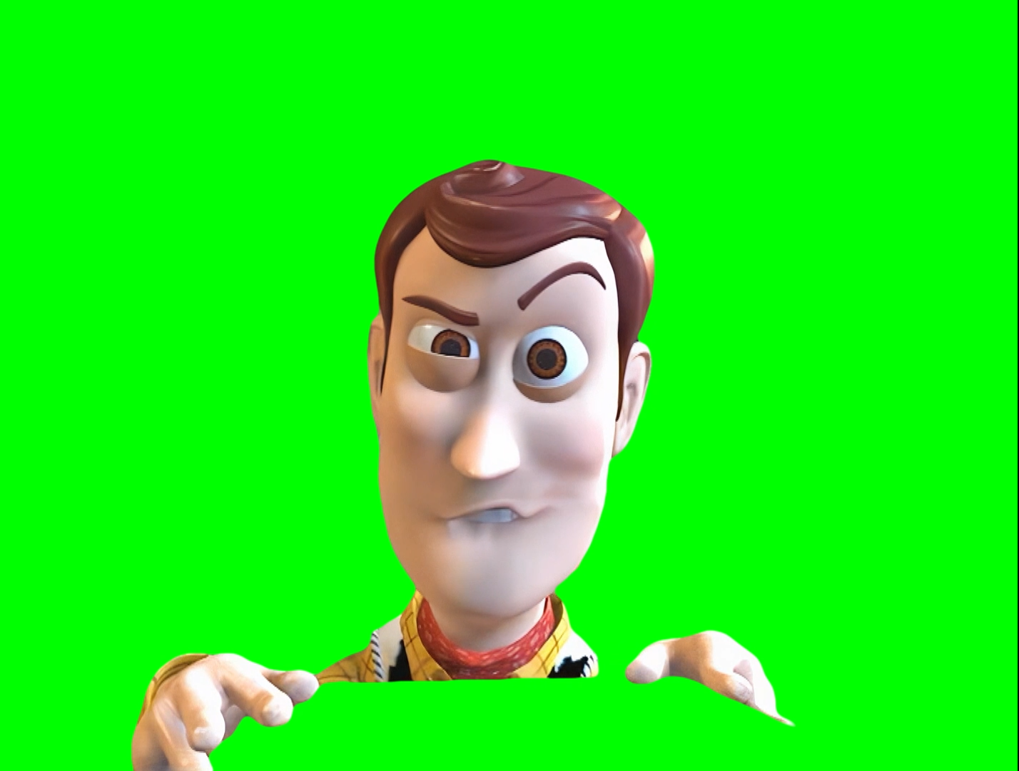 Green Screen Meme Template of Woody getting mad after losing a staring contest vs Lenny in a Toy Story short
