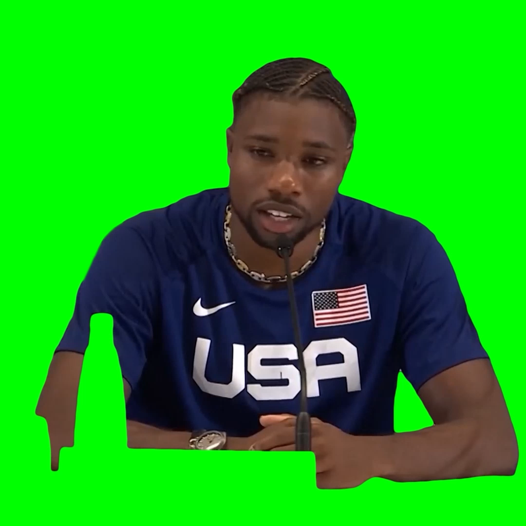 Green Screen Meme Template of Noah Lyles saying "World Champion of what? The United States?"Source: https://youtu.be/gBuoUH3AOlo?si=a1YKw_JE4llJBt3t&t=9