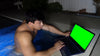 • Man Using Laptop at Beach meme V2 (Green Screen)